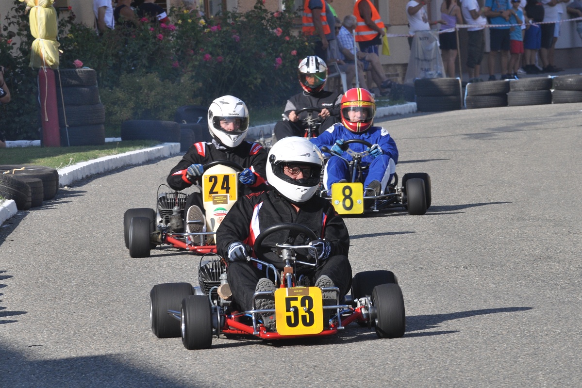 Motokárovou trať vytyčenou kolem místního kostela lemují řady diváků, kteří mají k dispozici řadu občerstvovacích stánků umístěných snad u každého stavení podél trati.