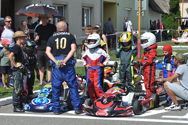 Motokárovou trať vytyčenou kolem místního kostela lemují řady diváků, kteří mají k dispozici řadu občerstvovacích stánků umístěných snad u každého stavení podél trati.